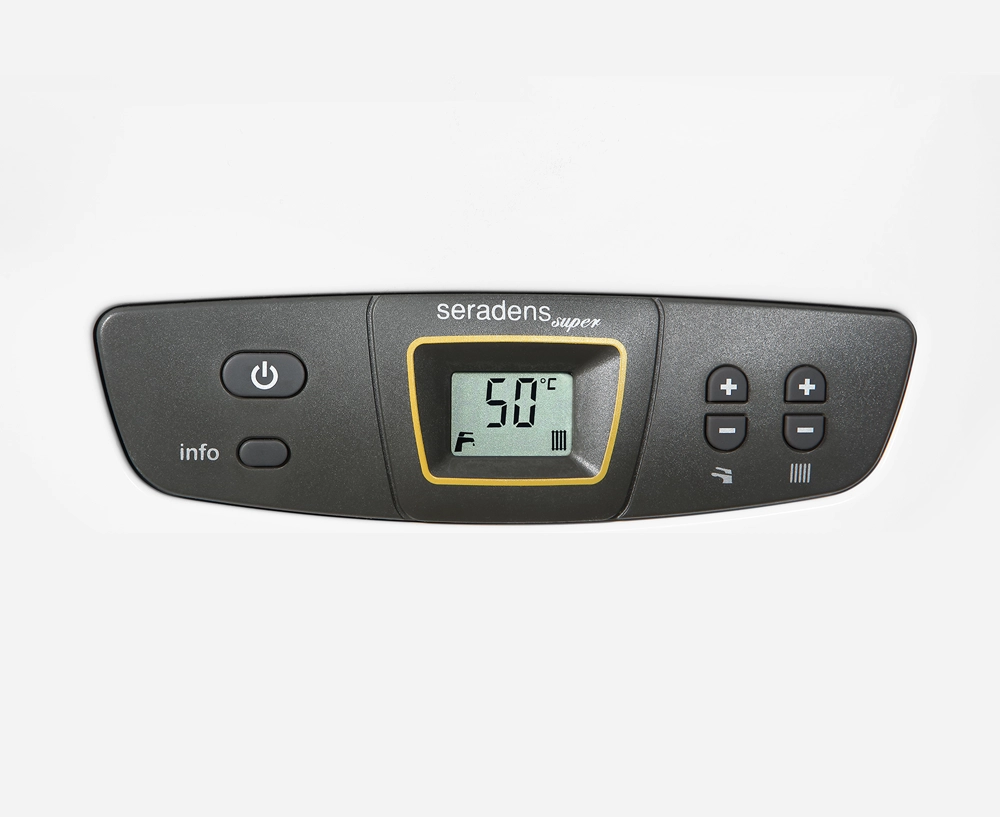 Beyaz ışıklı, şık tasarımlı kontrol panosu ve LCD ekran. Kolay anlaşılır Türkçe menüler. Sık kullanılan ısıtma tesisatı ve kullanım suyu sıcaklık ayarları için 4 bağımsız tuş. Tek tuş (info) ile tüm çalışma parametrelerine kolayca erişim imkanı.