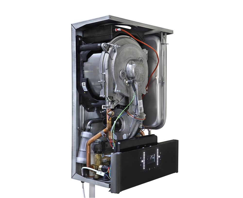 Dokunmatik paneliyle yüksek konforu güvenle sunar. kapasite ihtiyacına göre hızını ayarlayan modülasyonlu fan ve modülasyonlu gaz valfi, yüksek verimli, sessiz, ERP değerlerine uygun, değişken devirli sirkülasyon pompası, paslanmaz çelik plakalı eşanjör...